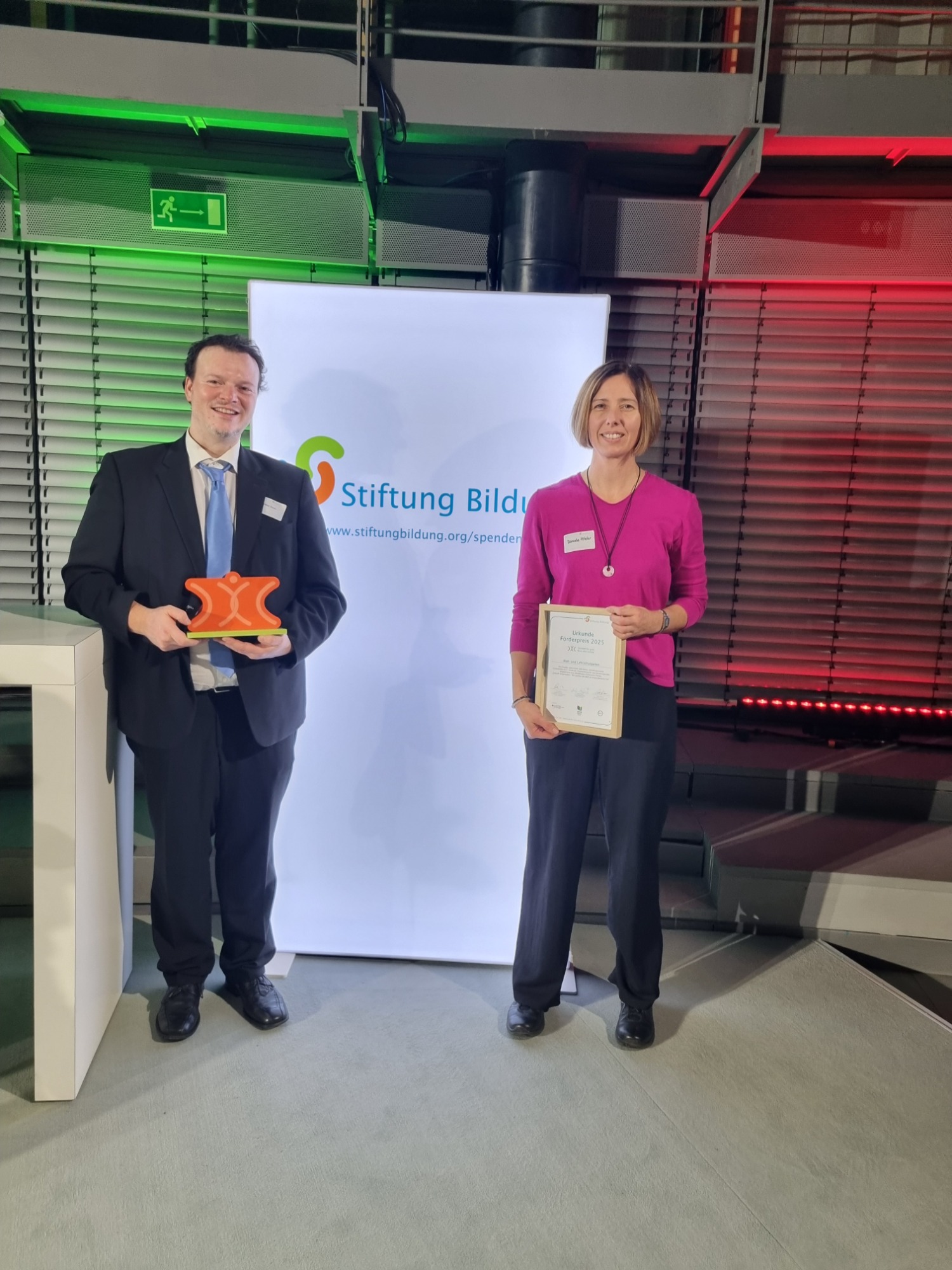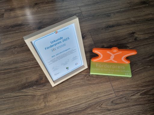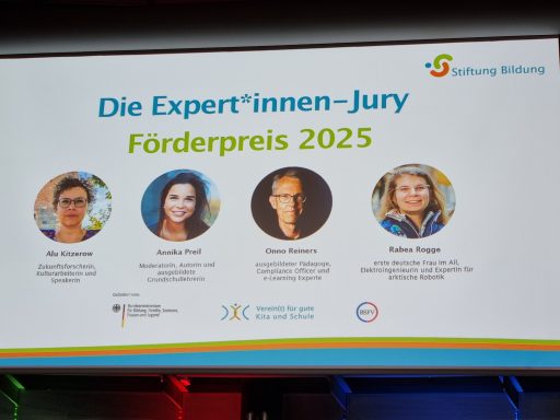 Wir haben die Chance auf einen der drei Jurypreise. Zusätzlich stehen alle ausgezeichneten Projekte ab dem 22. September 2025 auf der Internetseite der Stiftung Bildung zur öffentlichen Online-Abstimmung für die Publikumspreise.