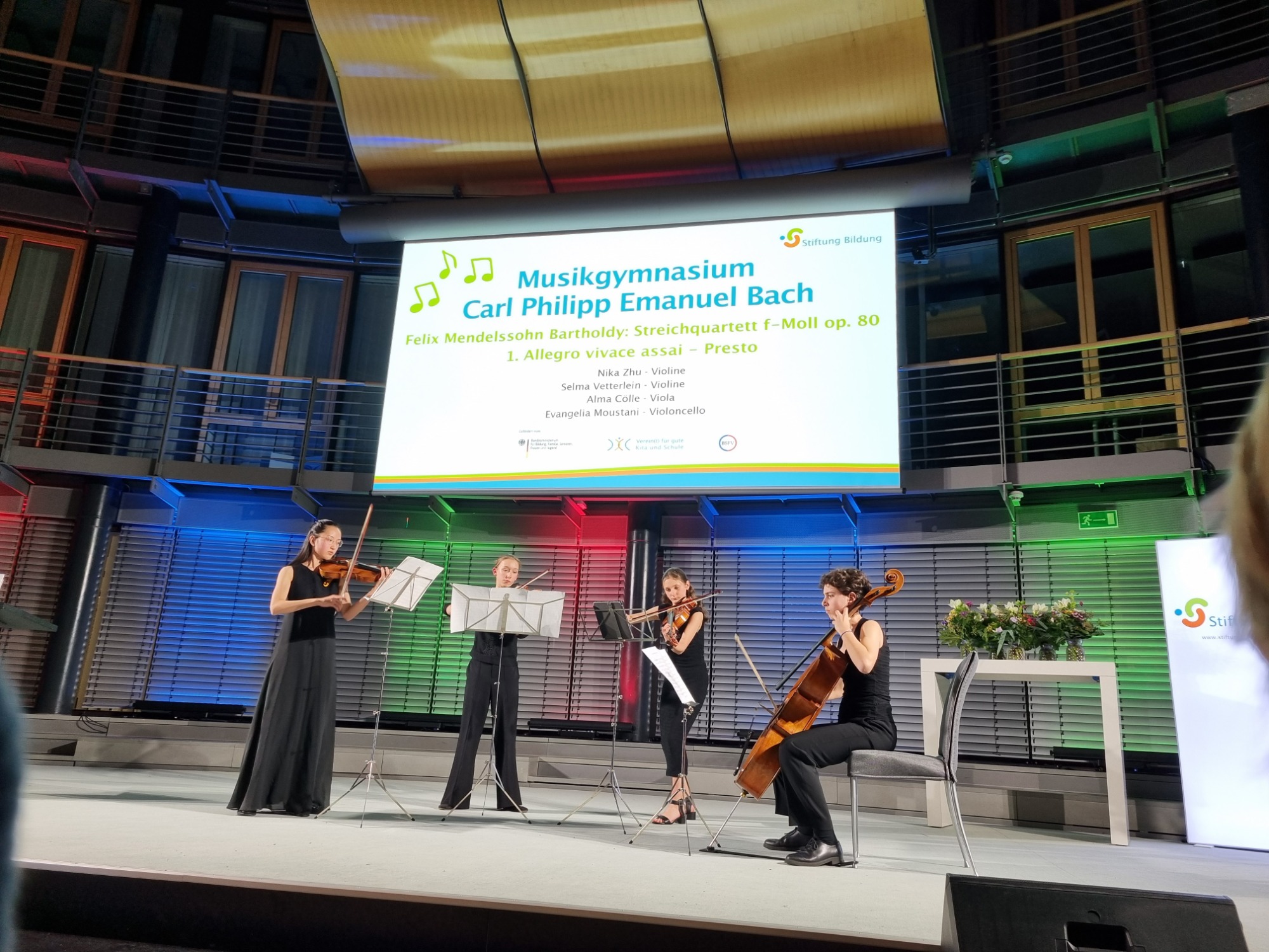 Zu den besonderen Momenten der Preisverleihung zählten unter anderem die bewegende Eröffnungsrede von Rainald Manthe, Autor und Vorstand der Stiftung Bildung, die Reden der Laudatorinnen und Laudatoren und die feierliche Übergabe der Auszeichnungen, die künstlerischen Acts der Flying Steps, des Musikgymnasiums Carl Philipp Emanuel Bach und der Musikerin Sotiria, ebenso wie der persönliche Austausch beim Get-together im Palais am Festungsgraben im Anschluss an die Preisverleihung.